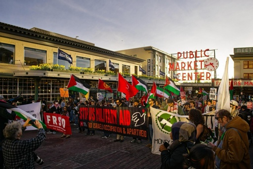 Seattle, WA – On February 28, less than 24 hours after the start of the U.S.– Israeli military assault on Iran, 300 demonstrators turned out to Seattle’s famous Pike Place Market to protest this latest U.S. war.