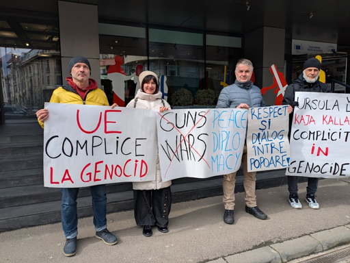 Our initiative targets the main belligerent actors on the international stage. At the Israeli Embassy, our message was well-received by young people. But the three decades of education in capitalist Romania had left their mark: one warned us that we had made a spelling mistake regarding the “UN Charter”. According to him, it was correctly spelled “UN Cartea (book, in Romanian).”…