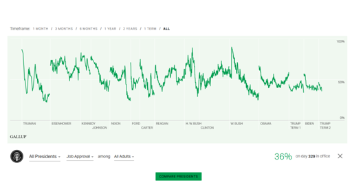 Featured image: Gallup’s presidential approval polling going back to 1945.