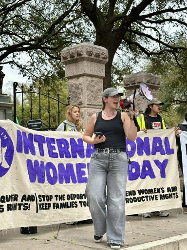 “Today, all around the globe, we join our sisters,” said Sofie Gomez, of Austin Students for a Democratic Society (SDS), the group that hosted the rally.