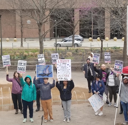 A variety of organizations supported the action, including Planned Parenthood, Texas Equal Access Fund, National Alliance Against Racist and Political Repression, DFW Anti-War Coming, DFW Free Aafia Siddiqui, Indivisible Dallas, Palestinian Youth Movement, DSA North Texas, Texas Alliance for Retired Americans, Revolutionary Front, Shias 4 Justice, Communist Party USA DFW, Codepink and Workers World Party.