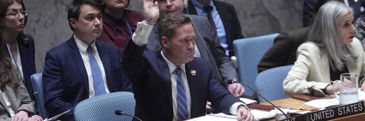 The United Nations Security Council on Wednesday adopted a resolution condemning Iran’s retaliatory attacks on Gulf nations without denouncing—or even mentioning—the illegal US and Israeli bombing campaign that started the war, which has hurled the region into conflict and destabilized the global economy.