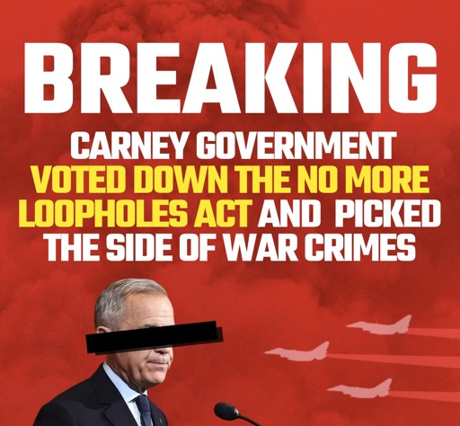 Ultimately, the vote on the No More Loopholes Act was a litmus test. And the Carney government failed. They picked the side of militarism and U.S. weapons companies. The side of Trump and Netanyahu. The side of genocide and war crimes.
