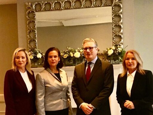 Sinn Féin leader Mary Lou McDonald T.D led a party delegation to meet with Starmer. She was accompanied by deputy leader Michelle O’Neill MLA, and Pat Cullen MP. McDonald said: