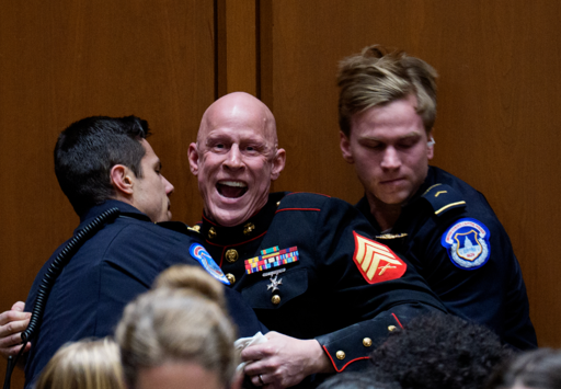 Capitol police, assisted by pro-war U.S. Senator Tim Sheehy, forced Marine Corps veteran Sgt. Brian McGinnis out of a Senate hearing where he was protesting the U.S.-Israeli war of aggression against Iran, breaking his arm on the way out and arresting him, charging him with assault. McGinnis, who is