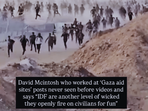 But it appears Mcintosh has a conscience, though he claims to be “blessed” by having served with the GHF. He posted the footage with a comment that Israeli forces shoot Palestinians “for fun.”