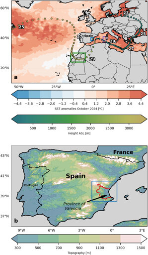 The episode of extreme rainfall that affected the east of the Iberian Peninsula at the end of October 2024 left a devastating mark on the province of Valencia. In some areas, such as Turís, more than 700 liters per square meter were recorded in 24 hours; in other words, in just one day, more water fell than the average rainfall in mainland Spain in an entire year. This caused catastrophic flooding and the disaster resulted in more than 200 deaths, as well as billions of euros in damage.
