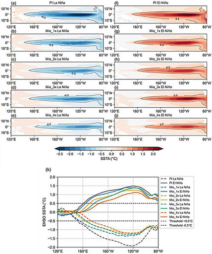 The Miocene, beginning approximately 23 million years ago, represents a canonical “warm-Earth” interval characterized by elevated atmospheric CO2 and a warmer global climate. The El Niño–Southern Oscillation (ENSO), as a leading mode of interannual climate variability, exerts pronounced influences on global precipitation patterns and the occurrence of climate extremes. Investigating ocean–atmosphere variability under Miocene-like high-CO2 background states therefore provides a valuable framework for evaluating climate-model performance in warm climates and for informing expectations of ENSO behavior under continued anthropogenic warming.