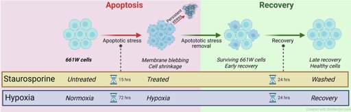 Photoreceptors are specialized cells in the eye that convert light energy into neural signals. Several diseases that cause irreversible vision loss, including age-related macular degeneration, retinitis pigmentosa and retinal detachment, are associated with dying photoreceptors. While there are many molecular pathways that result in cell death, there are also many that try to keep the cell alive.