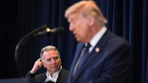 U.S Special Envoy to the Middle East Steve Witkoff listens to President Donald Trump speak to reporters at Trump National Doral Miami on March 9, 2026 in Doral, Florida. Photo by Roberto Schmidt/Getty Images.