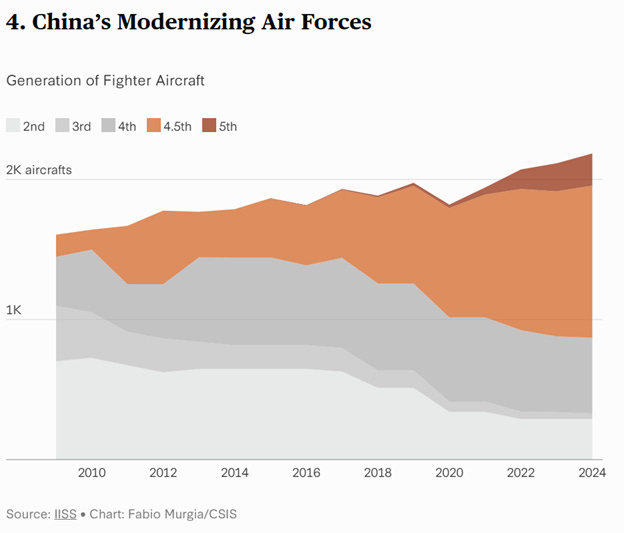 Add it up, and China’s rate of production means that China will have the biggest fleets of advanced fighter jets in just a few years, with hundreds of airframes a full generation ahead of the top planes in Western militaries.