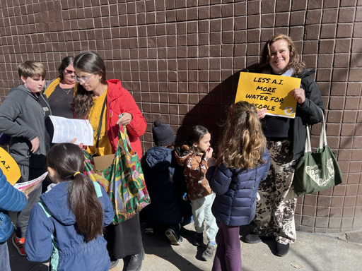 Outside, the protesters passed out flyers educating people on the harms of the unchecked use of AI on education and on students, as well as on its threat to the occupation of teaching. They also sang songs set to well-known themes that replaced the words of the song to criticize the use of AI in schools. Their signs read, “Less AI, more teachers” and “Pause AI in NYC schools now!”