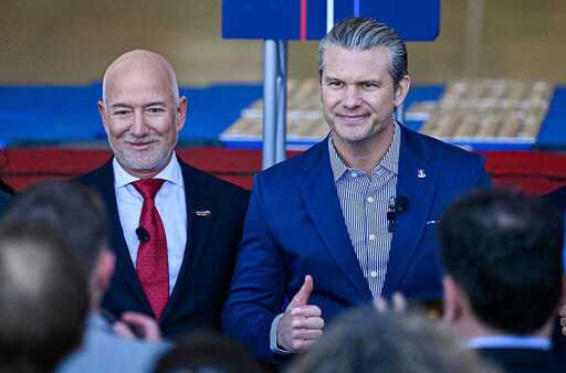 Secretary of Defense Pete Hegseth poses next to Jeff Bezos