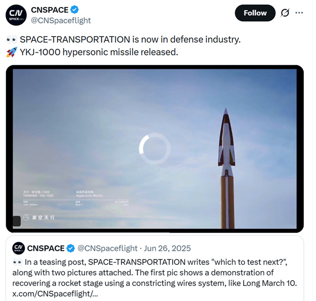 Private Chinese company rolls out Mach 7 hypersonic missile at nearly 90% lower cost