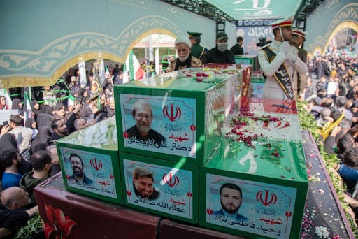 The missile that killed Ali Larijani also demolished an apartment building and killed more than a hundred people. Israeli defense minister Israel Katz announced that Israeli forces were now authorized to assassinate any senior Iranian official whenever they can, and they have continued to do so, bringing the number of Iranian officials assassinated in the past year to at least seventy.