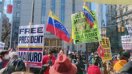 Outside the courthouse, a heavy police presence separated Venezuelan opposition supporters from solidarity activists demanding the release of Maduro and Flores and an end to US attacks against the Caribbean nation.