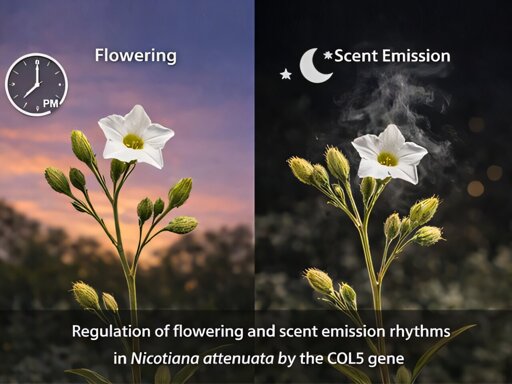 Morning-blooming morning glories and flowers that release fragrance at night seem as if they know the time. A KAIST research team has uncovered, at the molecular level, the workings of a “biological clock” aligned with insect behavior. This study suggests potential applications in technologies for controlling flowering time and fragrance.