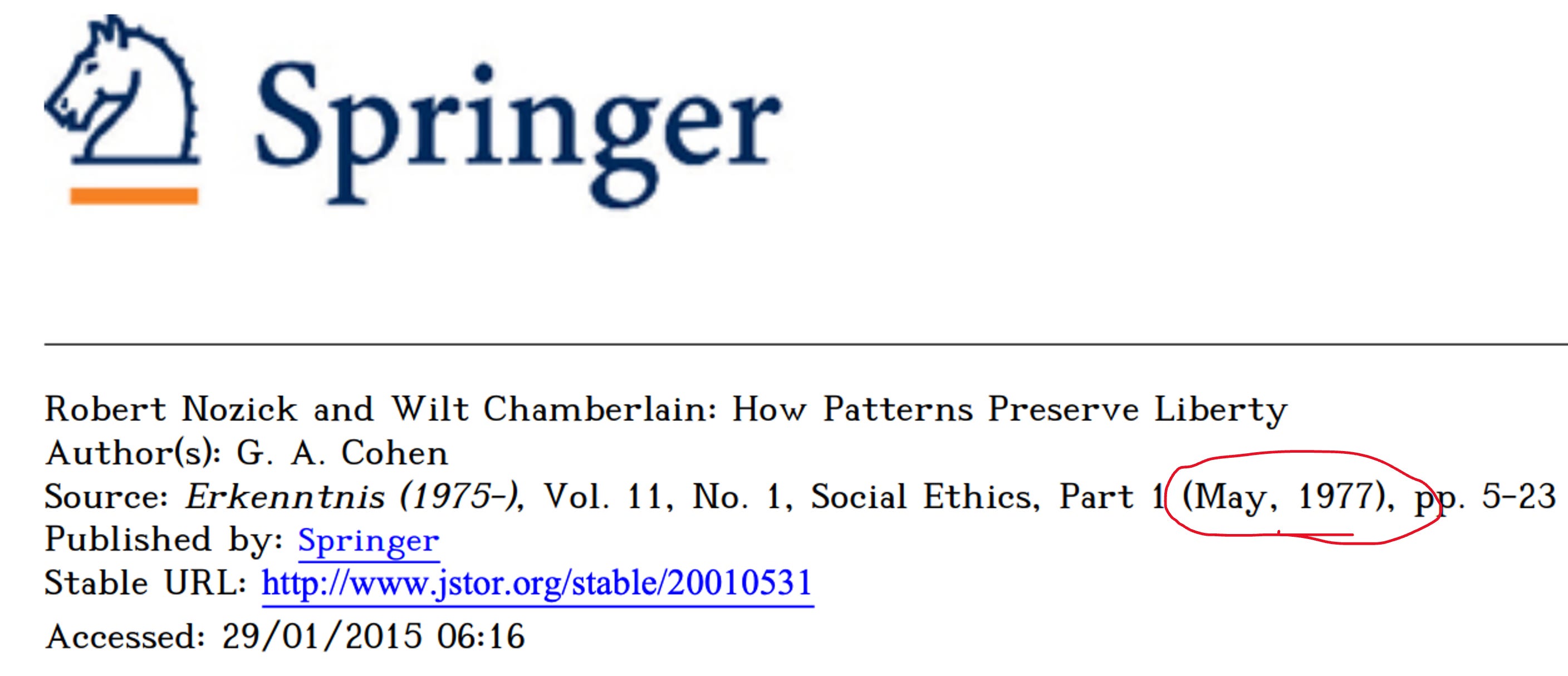 The first reason is maybe the least interesting, although I also think that as far as the actual claim people like Heath make about the trajectory of Cohen’s career goes, it’s absolutely decisive. And that’s that the chronology doesn’t check out. If you read Nozick’s big paper about Nozick’s Wilt Chamberlain example, that was published in 1977, and every major element of the moral case for socialism that Cohen makes at the very end of his life in Why Not Socialism? is already there. He’s already talking about equality as the most important socialist value. He’s already saying, this is footnote 8 in that paper, that justice just is equality, although strict justice sometimes has to give way to other values, and he’s already saying that the socialist principle of justice has to be tempered with a socialist principle of community. It’s all there, in a paper published before Karl Marx’s Theory of History even came out in 1978, in fact at whatever point he wrote that paper, the book wasn’t even going to be called that, in another footnote he calls his forthcoming book Philosophical Defense of Marx’s Theory of History. So, all the most important elements of the supposedly post-Marxist phase of Cohen were already there before he even came on the scene with the big attention-grabbing defense of historical materialism.