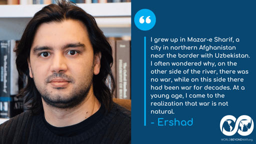 I grew up in Mazar-e Sharif, a city in northern Afghanistan near the border with Uzbekistan. I often wondered why, on the other side of the river, there was no war, while on this side there had been war for decades. At a young age, I came to the realization that war is not natural. If it were natural, it would exist on the other side of the river as well. For example, when it rained in my city, it also rained across the river; when we had snow, they had snow too. Yet we had war, and they did not. This became a clear lesson for me: war is not natural; it is man-made. And what is made by humans can also be stopped by humans.