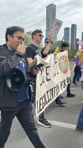 Austin, TX – On Saturday, March 28, over 10,000 people rallied for No Kings Day, to protest against Trump’s agenda. After a march beginning at Austin City Hall, protesters gathered at Auditorium Shores for a rally featuring over 80 organizations tabling, many of them giving speeches and teach-ins throughout the event.