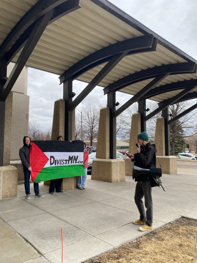 Members of the AWC gave public testimony at the meeting. AWC members demanded divestment from apartheid Israel and weapons companies, but focused particularly on Palantir, a company whose AI surveillance software has directly facilitated human rights violations in Palestine, Iran, and Minnesota itself. As of June 2025, the book value of the SBI’s investments in Palantir was $55 million.