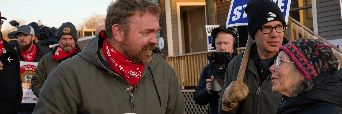“We had to shed her from our politics. Quite frankly, we have to shed all the people like her,” Platner continues as a musician plays the labor movement anthem, “Which Side Are You On?”