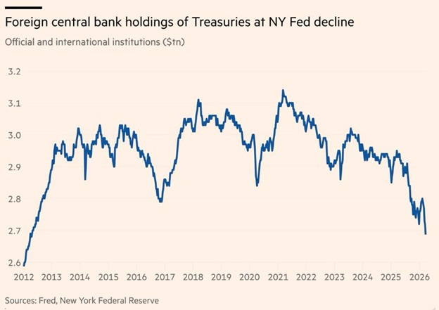 Foreign central banks and institution are selling off their holdings of US Treasury bonds.