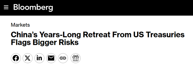 Bloomberg, China’s Years-Long Retreat From US Treasuries Flags Bigger Risks