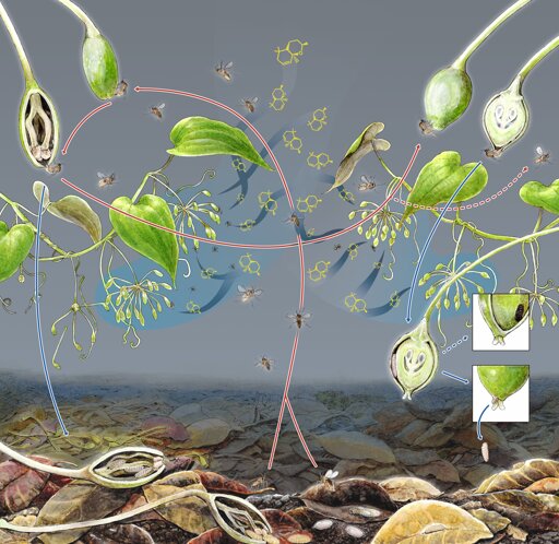 A plant uses a rare scent to guide its pollinator to male flowers first and to female flowers later, finds a study led by Kobe University. The work, appearing in Current Biology, uncovers a precise chemical system that not only keeps this partnership specific but also helps ensure it remains beneficial to both parties.