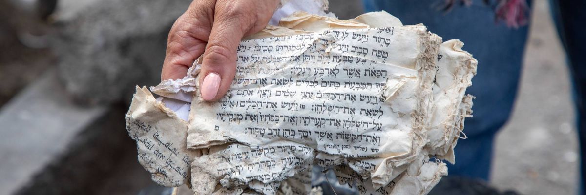 A video shows Rabbi Younes Hammami Lalezar, a leader of the country’s Jewish community, walking amongst the still-smoking wreckage with emergency response teams. Other photos show Hebrew-language prayer books scattered among the rubble.