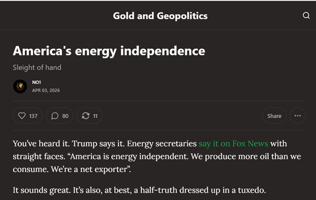 5 days ago · 175 likes · 102 comments · No1](https://no01.substack.com/p/americas-energy-independence)