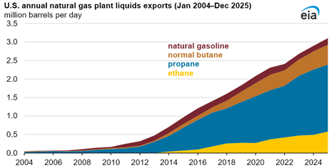 So the conventional wisdom with respect to American energy independence falls apart when we see where the numbers come from. “Petroleum” is crude oil, and that term also includes natural gas products. The boom in NGL—natural gas liquids—was the result of the shale revolution that really took off around fifteen years ago, and which drove exports of NGL’s from a hundred thousand barrels a day to over 3 million barrels a day: