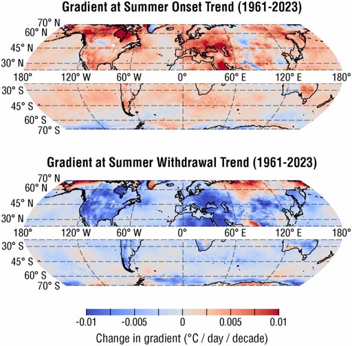 Summer weather is arriving earlier, lasting longer and packing more heat than it used to—and it’s happening faster than scientists had previously measured. A new study by UBC researchers has found that between 1990 and 2023, the average summer between the tropics and the polar circles grew about six days longer per decade. That’s up from roughly four days per decade found in past research investigations up until the early 2010s.