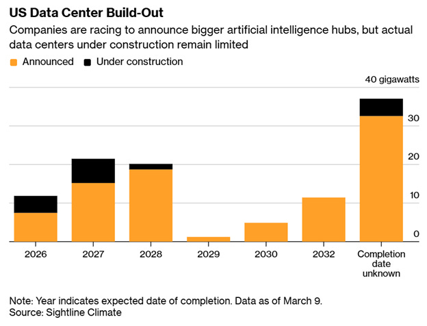 That is money that has been announced, and budgeted. But when we look under the hood, not much is really happening. Half of the data centers planned for 2026 will be delayed, or canceled outright. There are lots of challenges in this industry now. Data center construction isn’t popular, politically. And on the supply chain side, manufacturers can’t meet the demand for all the equipment that is necessary to build them. That’s especially true for electrical gear, and data center builders need a lot of imported equipment to get them built.