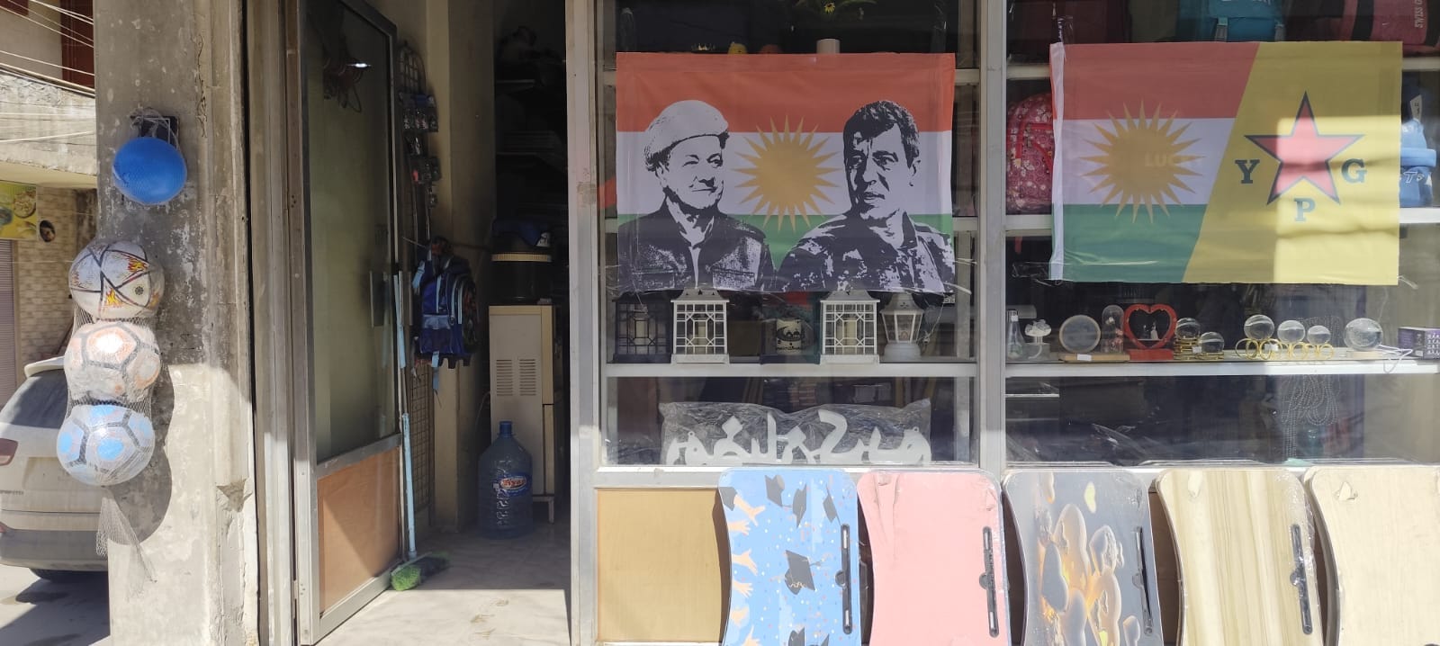 Store showing political posters in Qamislo, Syria. Photo: Alexis Daloumis