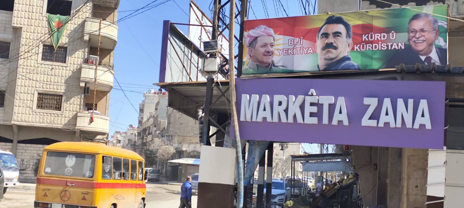 In the Kurdish-majority Syrian cities of Haseke and Qamislo, the Kurdish national flag is now everywhere—something which until recently was forbidden by the SDF because of policies stressing ethnic inclusion. Banners featuring Ocalan, together with Iraqi Kurdish leaders Massoud Barzani and Jalal Talabani, or of SDF chief Mazlum Abdi and Massoud Barzani, have become visible in some areas.