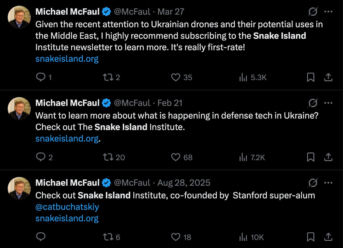 But first, some other updates on the Snake Island Institute that didn’t make it into my latest “Azov Lobby Review” (Fall 2025-Winter 2026). For starters, the SII has a new communications director, Christopher Collins. According to his website, “Since 2019, I have supported development projects financed by USAID, the FCDO [U.K. Foreign, Commonwealth & Development Office], Global Affairs Canada, and European agencies.” At the time of the Russian invasion, Collins was a senior project manager for the U.S.-funded National Democratic Institute.