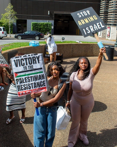 Outside the hotel, about 30 people protested the DNC’s lack of opposition to Israeli and U.S. wars.