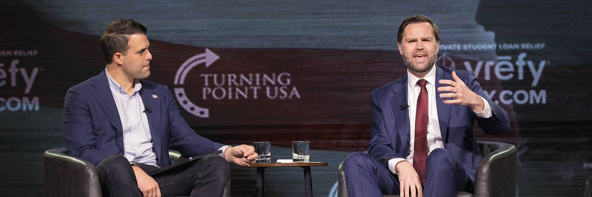 Turning Point USA was co-founded by far-right firebrand Charlie Kirk, who was shot dead last year while trying to deflect blame for US gun violence on gangs. Kirk explicitly opposed any US regime change war in Iran.