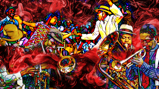 horns crying through blue smoke,