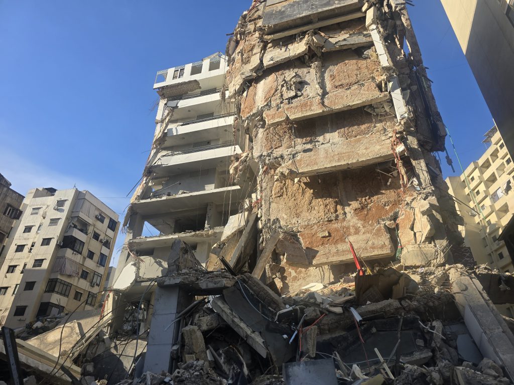 An apartment building severely damaged by Israeli bombs on April 8 in Beirut. Photo by Roqayah Chamseddine