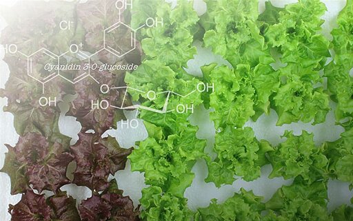Red-leaf lettuce is red due to anthocyanins, a class of polyphenolic pigments widely studied for their antioxidant properties. In plants, anthocyanins are synthesized through enzymatic reactions originating from the amino acid phenylalanine. Along this biosynthetic pathway, multiple flavonoids—an umbrella term for diverse plant secondary metabolites—are produced as intermediates and ultimately converted into anthocyanins.
