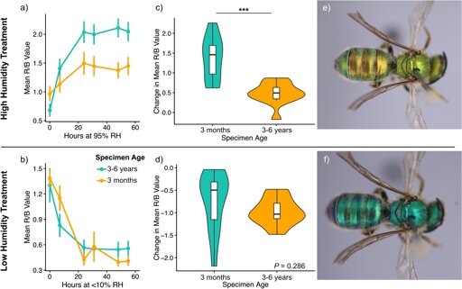 Nature is a riot of color. In the animal kingdom, many species, from insects to cephalopods, use their permanent color or change it for communication, camouflage, and thermoregulation. While this type of reversible shift has been extensively studied, less is known about how the environment may passively affect coloration. In a paper published in the journal Biology Letters, scientists report that sweat bees change color as ambient humidity fluctuates.
