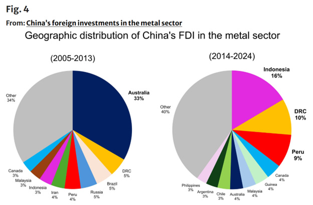 For the metals, cumulative Chinese FDI is on that dotted red line, and now stands at $250 billion. The Belt and Road Initiative not only expanded FDI, but also redirected the investment flows: before 2013, Australia claimed a third of Chinese outbound investment. Since 2014, it’s just 4% to Australia. Massive new investments from China into Indonesia, up over five times. Democratic Republic of Congo and Peru, more than doubled. Double-digit percentage increases in over a dozen countries, in absolute terms:
