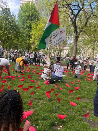 Philadelphia Credit: Cindy Lu On April 18, a clear, warm spring afternoon, over 50 people rallied in solidarity with Palestinian prisoners in upscale Rittenhouse Square in Philadelphia, covering the lawn with small red triangles to represent the hundreds of Palestinians facing the threat of death by hanging in Israel. Participants . . .