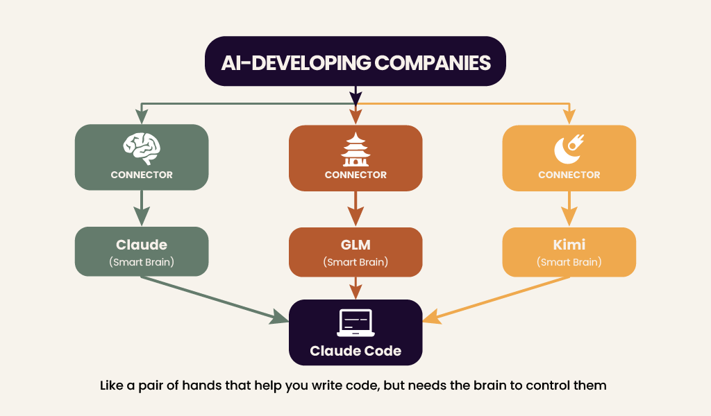 If you want to use an alternative inference service in addition to the official default route, providers such as Zhipu GLM and Moonshot Kimi offer interfaces compatible with common clients. In this way, the interface and workflow remain the same, but the underlying model can be switched, without changing tools.