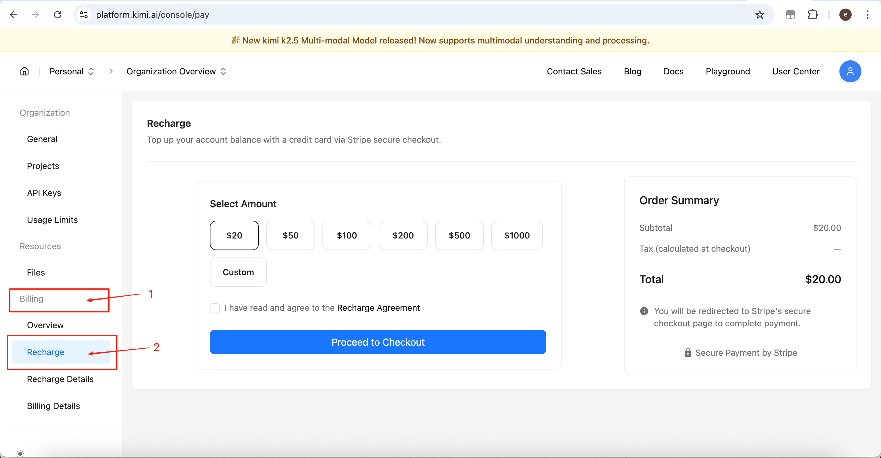 Kimi API keys require account balance to function; otherwise requests will fail.