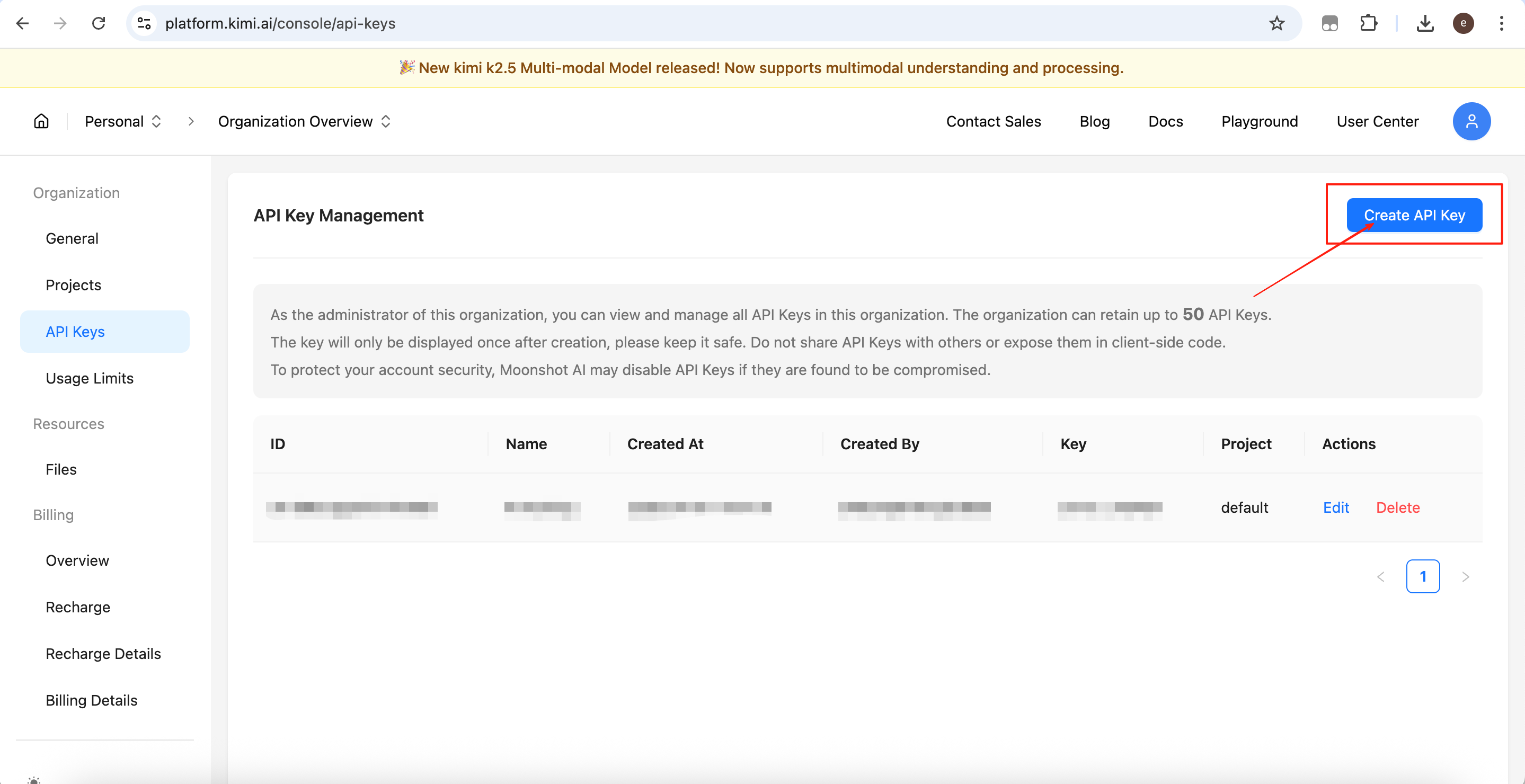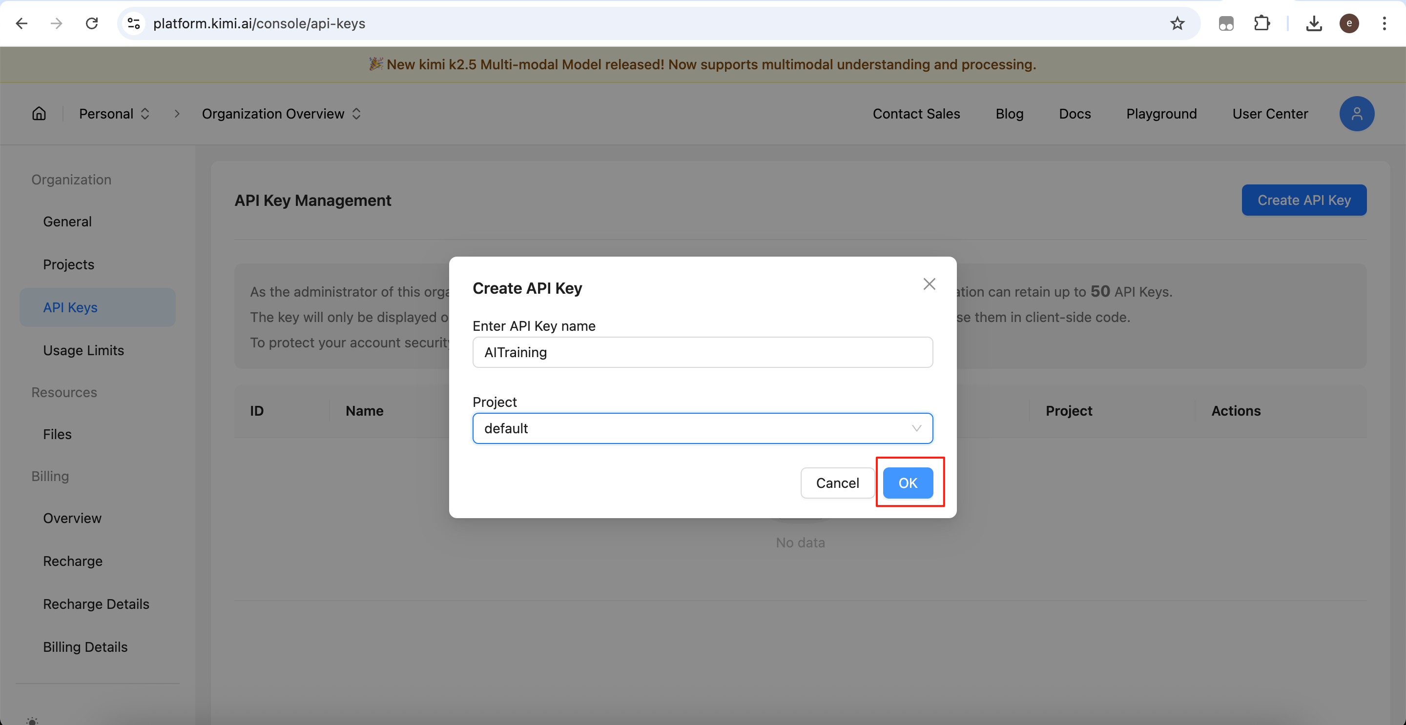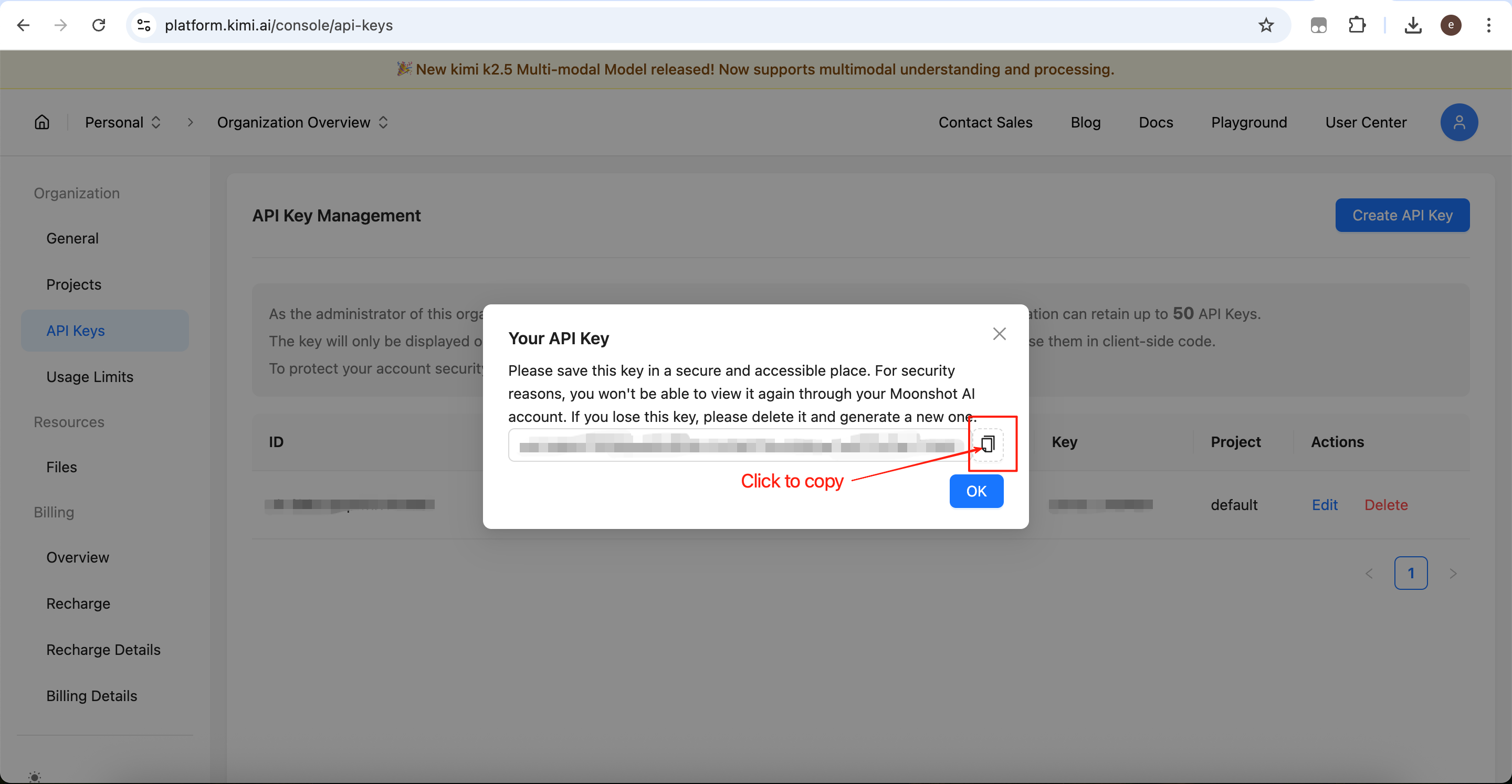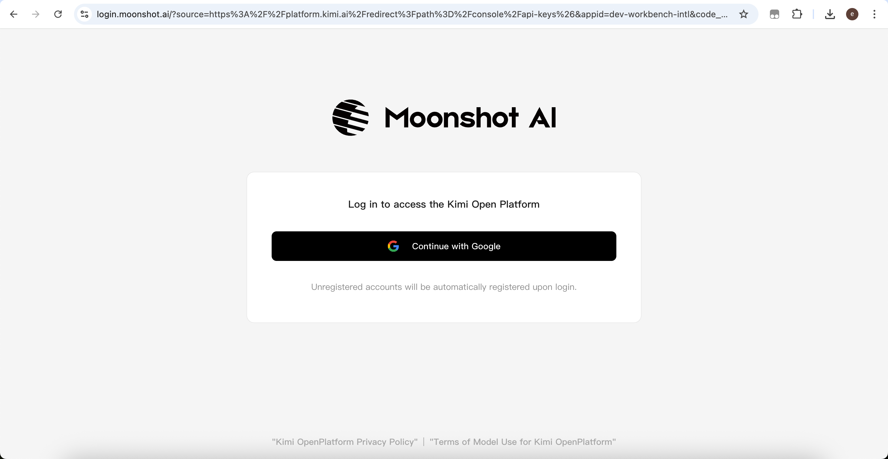 Open: https://platform.kimi.ai/console/api-keys and log in.