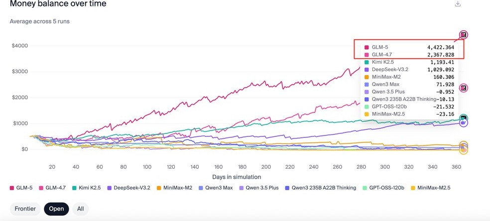 In a publicly available third-party evaluation (see Vending-Bench 2), models from Zhipu and Moonshot performed well in complex tasks.
