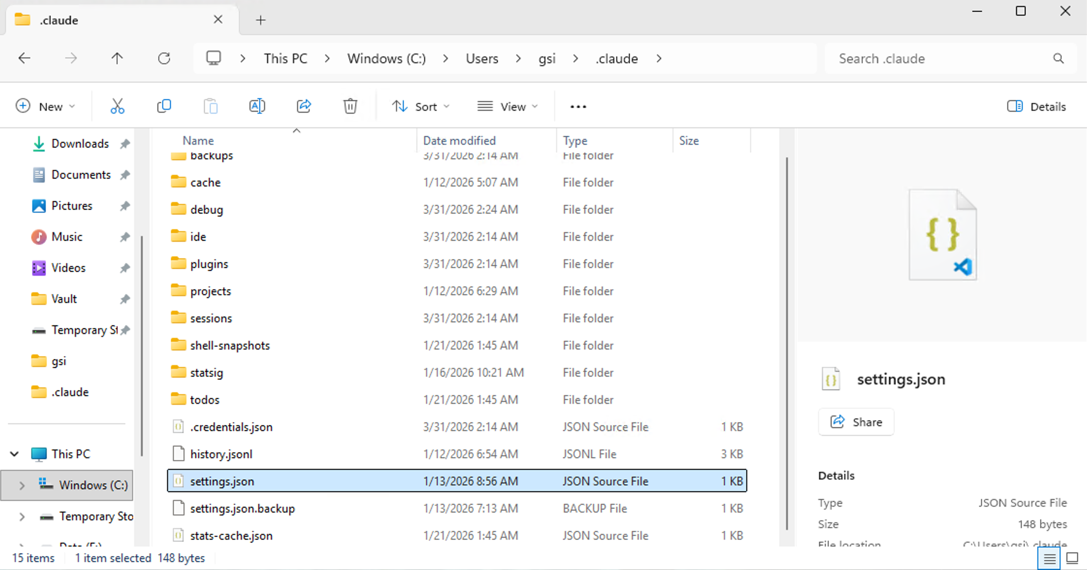 C:\Users\<your user name>\.claude\settings.json (replace <your user name> with your actual Windows username)
